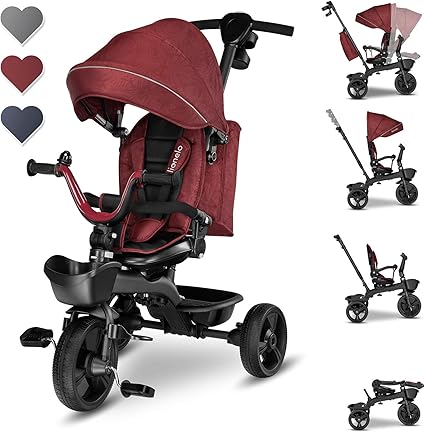 Lionelo Kori Dreirad Mit Schubstange Fur Kinder Ab 1 5 Bis 5 Jahre Drehbarer Sitz Magnesium Rahmen Wartungsfreie Gummirader Freies Rad Abnehmbares Vordach Burgund Amazon De Spielzeug